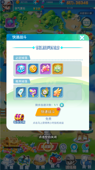 1、7日活动 开服的7日活动-全民福利每天都会有超级优惠的道具刷出,千万不要错过。 2、VIP-至尊商店 糖果等培养材料,高抽砸蛋,天空之柱门票,建议直接拉满,逐步积攒优势。 3、快速挂机 每次快速挂机都能直接获得120分的挂机收益,建议每日都买满。 4、日常副本 用钻石购买日常副本次数也是很划算的哦,同时还可以获得大量养成资源。 5、冒险事件 遇到不心仪的冒险任务,放心用钻石去刷新吧,更高质量更好的奖励任务等着你来拿。游戏截图