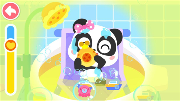3、随后拉到小宝贝去相应的场景,这里显示沐浴,我们根据提示向右边拉动。