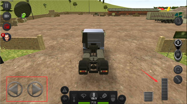 7、下方我们根据游戏任务的提示,将车辆驾驶到相应地点,左边是控制方向、右边是加速;