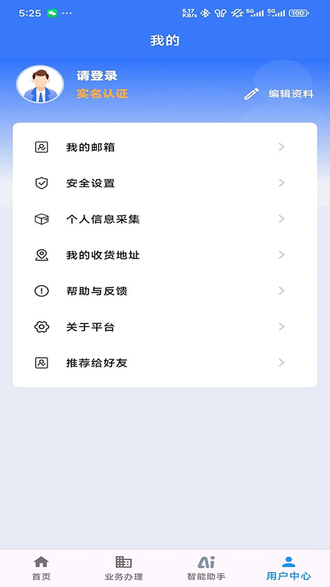2、登录账号成功后进入实名认证,进行实名认证,输入相关信息,点击下方的认证
