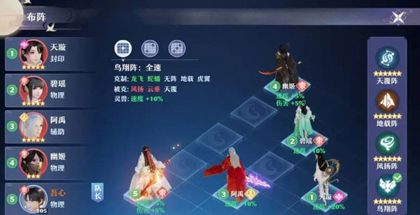 碧瑶+幽姬+宁无言+天璇,常规物理阵容搭配,宁无言可以加物攻速度buff,天璇可以抢1速封,还会使用痴情咒保证容错,碧瑶和幽姬可以将输出拉满。