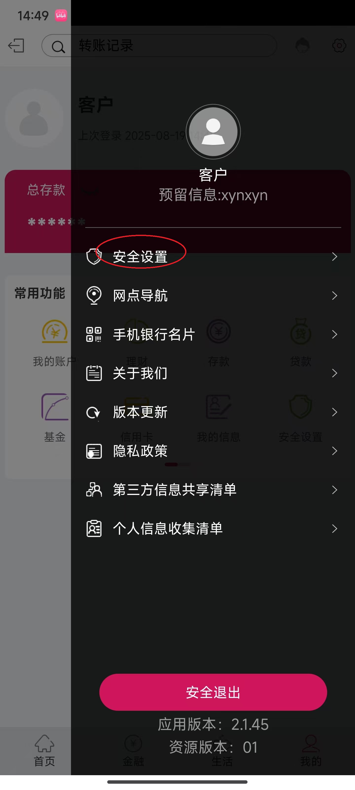3、点击“安全设置”。