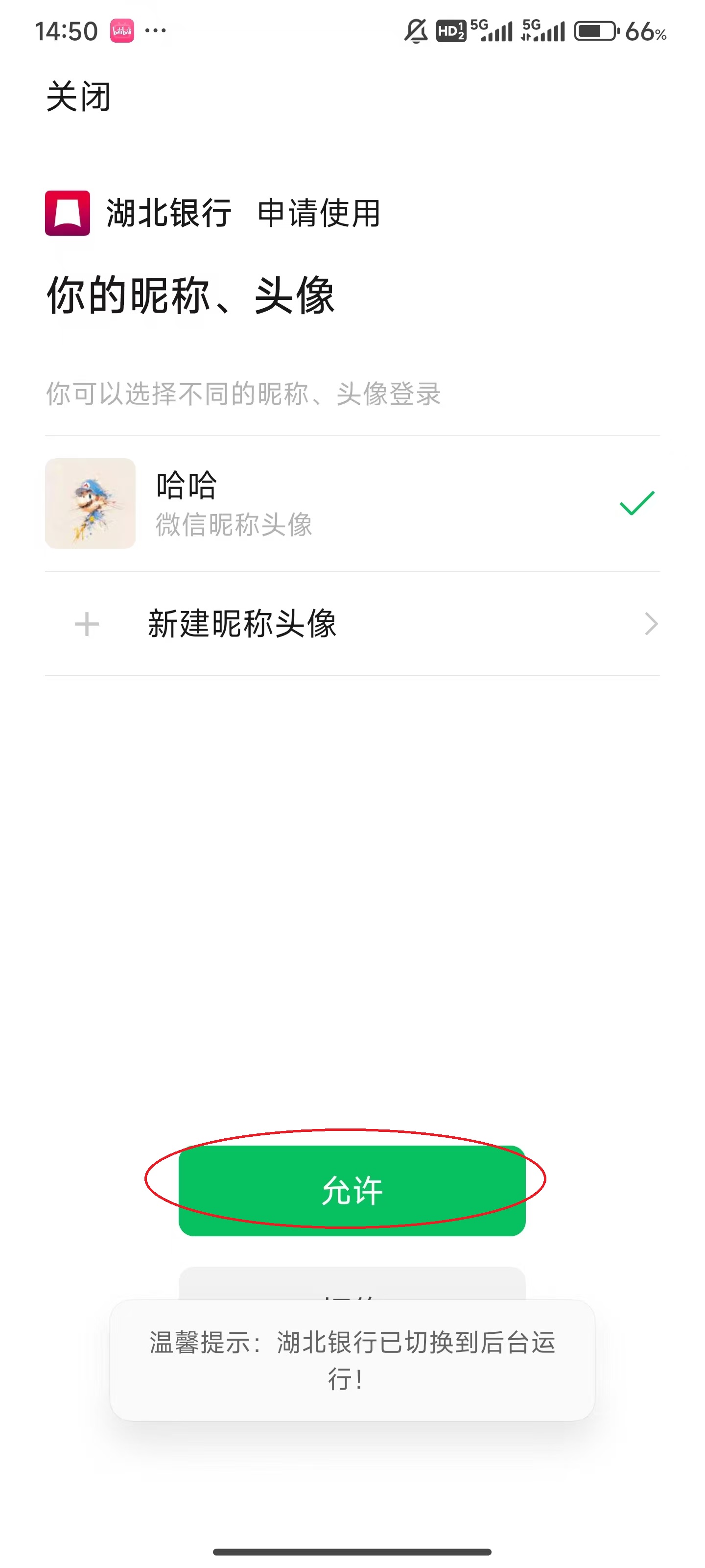 7、跳转微信授权页面,点击屏幕下方的“允许”。