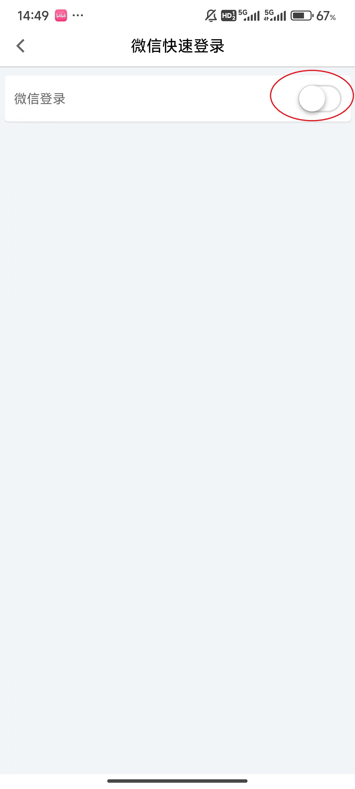 6、点击屏幕上方的“微信登录”右侧的“开关”。