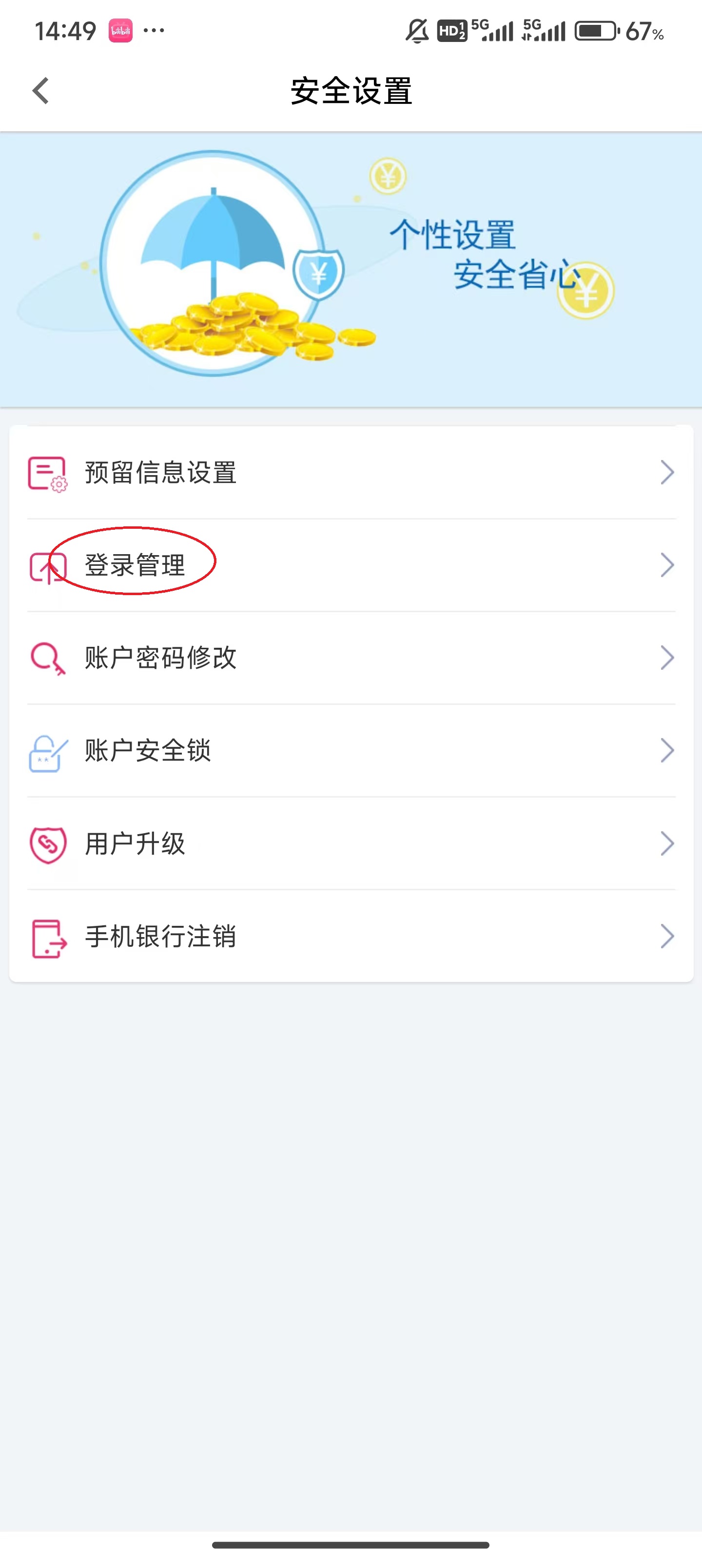 4、点击“登录管理”。
