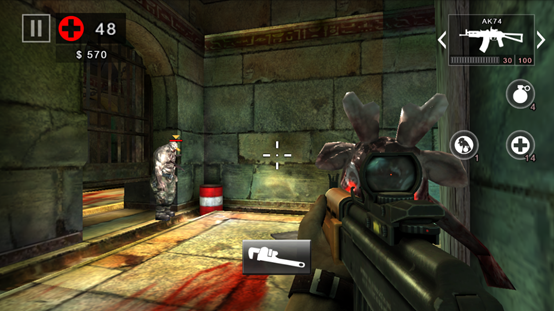 1、游戏操作 左半边屏幕区域是人物的移动区域,右半边屏幕是人物的视角观察区。(比死亡扳机1代灵敏度高多了)。