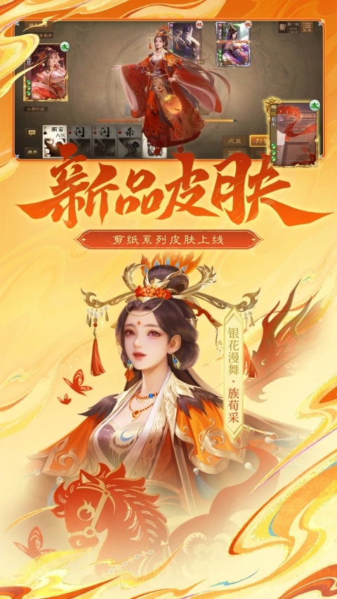 族望所归,欢聚相随!《三国杀OL》2026新春盛典活动开启! 【新武将】 可抚军心发牌助阵,能诛敌寇弃牌扬威,全新武将【族荀彧】重磅登场! 兼具辅助与过牌,萦香在手的摸牌神将,清绝贵女【族荀莳】登场!【限时玩法】 1、山河图:山河图·北望全新PVE剧本上线,通关赢豪礼 2、斗地主:新春限时地主将年兽上线、魂五虎返场,超级加倍玩法开启 3、年兽大作战:新春限定玩法上线,集春联瓜分元宝大奖,最高可得8888元宝 4、神武再世:新春限时回归,全神将限免体验