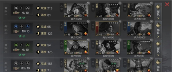 这个阵容就是比较全面了,可以帮助我们进行攻击以及进行十面埋伏。不过郭嘉的阵容还有避其锋芒的效果,可以更好地进行闪避,在前期开荒的时候,只要合理的利用这三个武将,就能不断的扩大兵力,快速完成开荒。