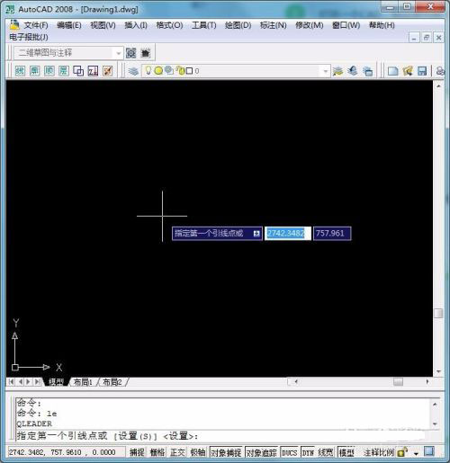 3、然后enter,会让你指定第一个引线点,然后在指定一点。这个根据需要看是不是需要引线了。