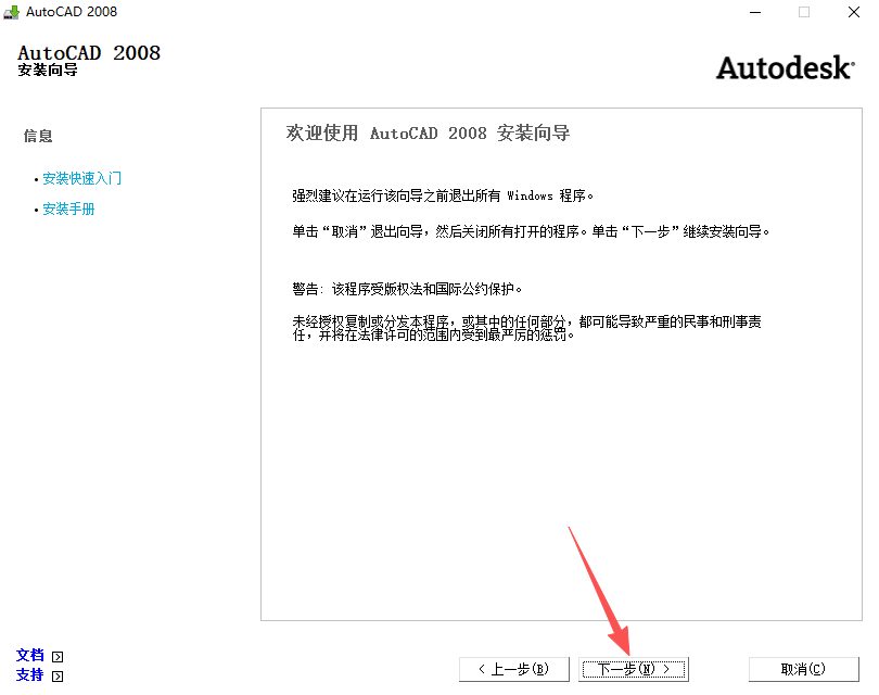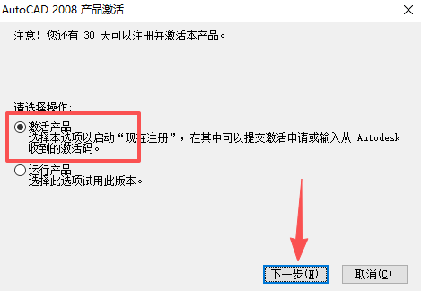 11、双击CAD2008图标启动软件,选择【激活产品】,点击【下一步】。