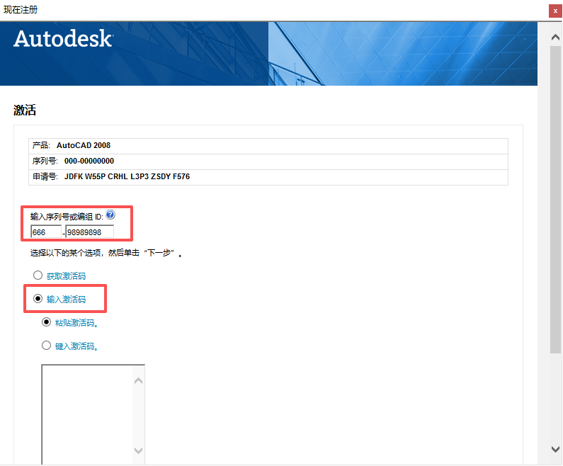 12、输入序列号【666-98989898】,选择【输入激活码】。