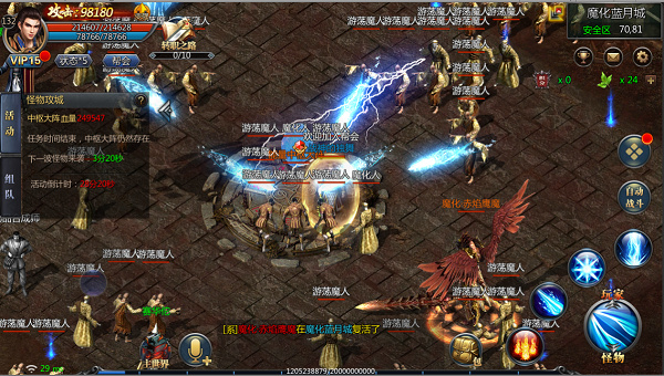 全服人民齐协力,共同御敌赢奖励!魔化蓝月城受到怪物袭击,需要各位勇士前去支援!击败BOSS可赢取丰厚奖励哦!快拉上兄弟们一起打怪兽吧!