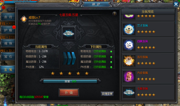 1、玉佩在提升基础属性同时,还可以极大提升玩家的PK伤害。