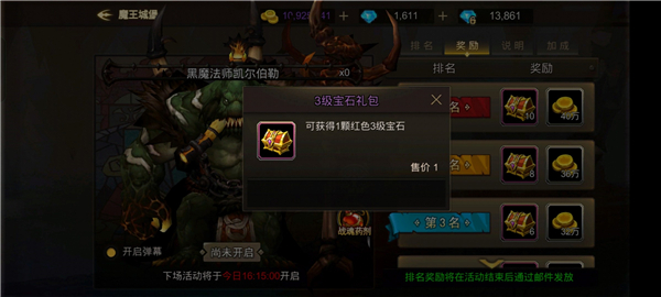 玩家等级达到后开放魔王城堡活动, 活动结束后,将会依据个人对BOSS造成的伤害量来进行排名,排名越靠前,结算后获得的奖励也将越丰厚,此活动是红色攻击宝石主要来源。