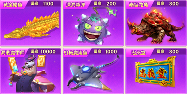 【新增特殊鱼】 1.新增特殊鱼:贝壳王!神秘贝壳王现身,最高30000倍; 【系统更新】 1.新增角色武器,激活解锁专属上阵姿态,独特炮倍系数加持,金币赚到手软! 2.新增活动:武器库,魅夜歌姬专属甜心歼灭炮藏于其中,快来试试手气吧!游戏截图