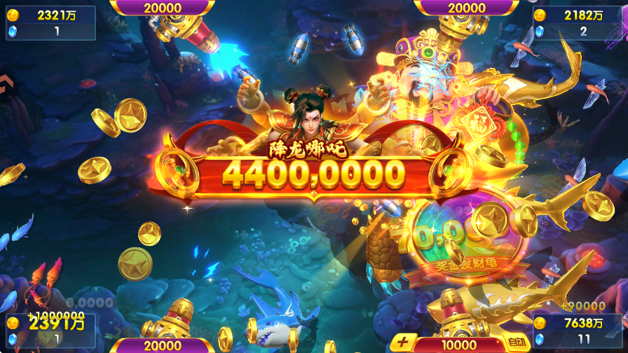 【新增BOSS】 1、新增BOSS圣刘备,捕获最高可得120000倍! 【新内容】 1、捕鱼领大奖:渔场中捕获BOSS、特殊鱼,掉落宝石,累计掉落一定数量的宝石可领取角色、宠物、炮翅、金币等奖励; 2、唐三藏角色解锁专属武器三藏真经,火力全开,爆机渔场;游戏截图
