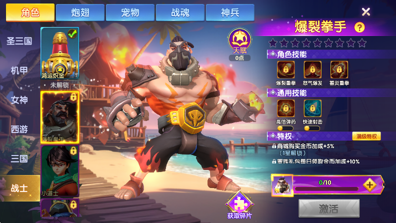 4、游戏中还有众多游戏角色,每个角色都有特殊技能,玩家可以通过各种活动获得碎片进行合成。