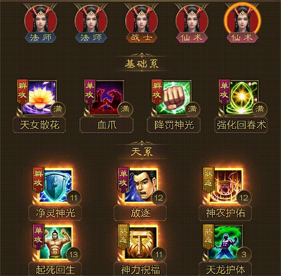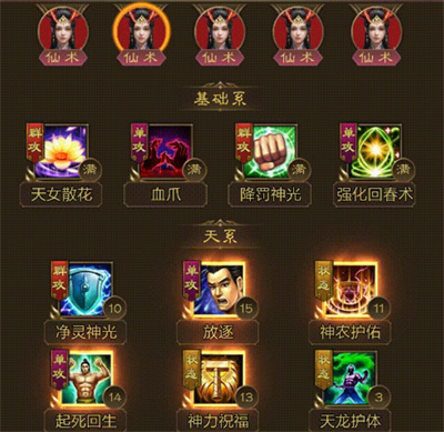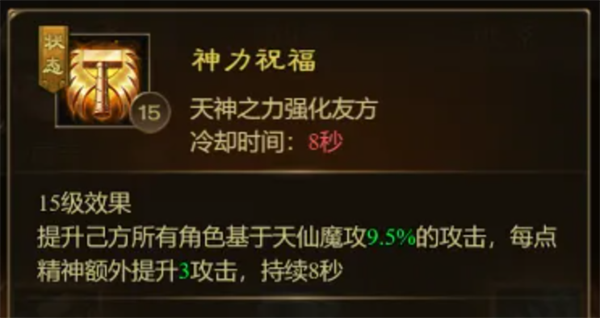 5、神力祝福:提升己方所有角色基于天仙魔攻的攻击力。