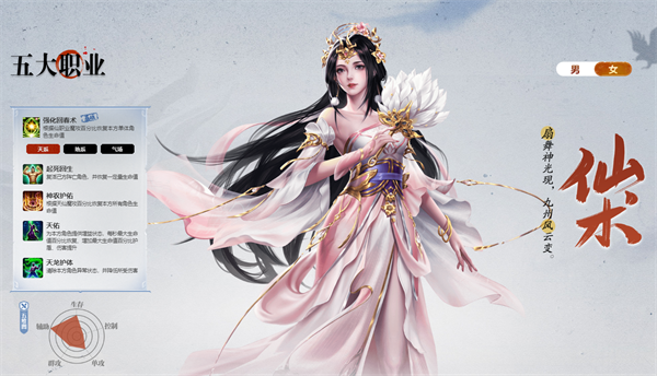 3、天仙不但能给给整个队伍添加各种增益状态,还能提供强大的回血恢复能力,甚至拥有游戏中独一无二的“起死回生”复活能力。