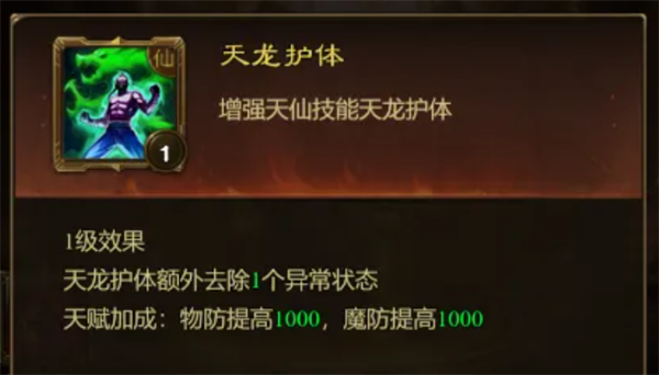 11、天龙护体:天龙护体额外增加去除异常状态的个数。