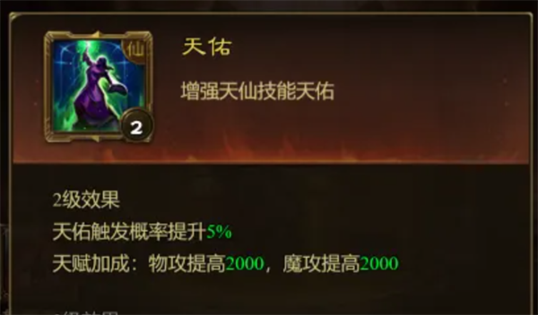 评价:天佑是天仙在释放增益技能的时候概率额外产生一些效果,替身宝宝强化了这个概率, 提高了天仙的辅助能力。