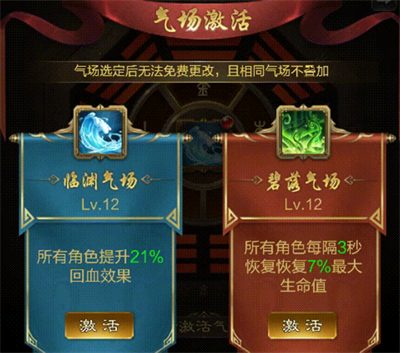 7、天仙的气场推荐使用临渊气场,天仙的恢复技能配合上回血效果增强,可以恢复更多的生命值,极大提高阵容的续航能力!