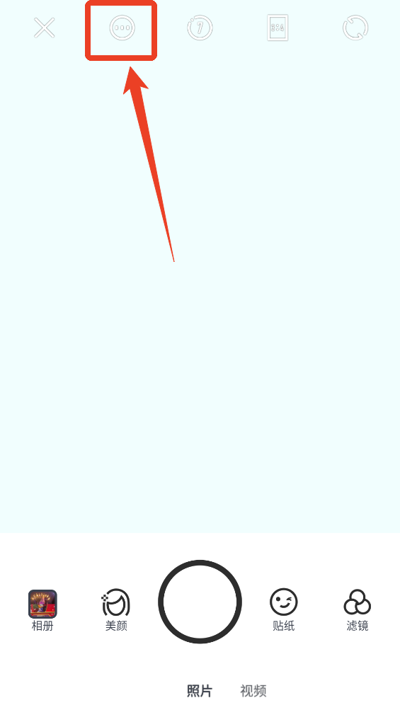 1、在拍照界面找到上方第二个三个点的标志,点击。