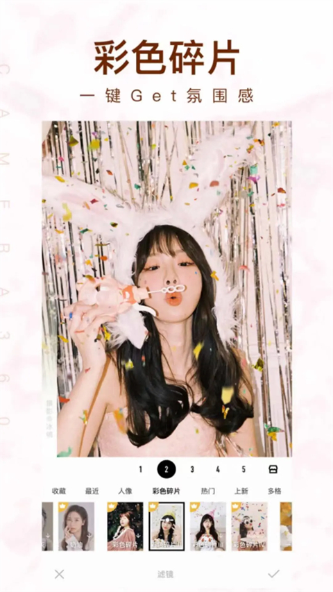 1、强大的人像精修工具 100+ 专业且易用的人像美化功能尽收囊中,快速精细调整面部和身体特征、祛除各类皮肤瑕疵、添加时尚妆容。在这里,你可以自由地手动修图,也可以信任优秀的自动美颜算法,一键让你的照片呈现最佳状态。Camera360 同时满足日常和高级修图需求。 2、丰富多彩的滤镜 1000+ 风格滤镜,覆盖人像、风景、美食、街拍、夜景等任何你需要的场景,为你的照片写下不同的心情。使用最独特的换天空滤镜,能够自然无痕地添加美丽的蓝天、史诗般的暴风雨,绚丽的日落和迷人的云层,将你的照片提升至一个新的水平。在 Camera360,你能轻松做到这些,而无需任何 PS 技能。 3、好用的设计素材 Camera360 提供了丰富的智能工具、精美素材和模板等你创作。最贴心的是,你不仅可以一键套用设计师精心设计的模板,还可以在此基础上自由地调整。在这里,人人都能轻松为自己的社交媒体创作有趣的图片。更新日志