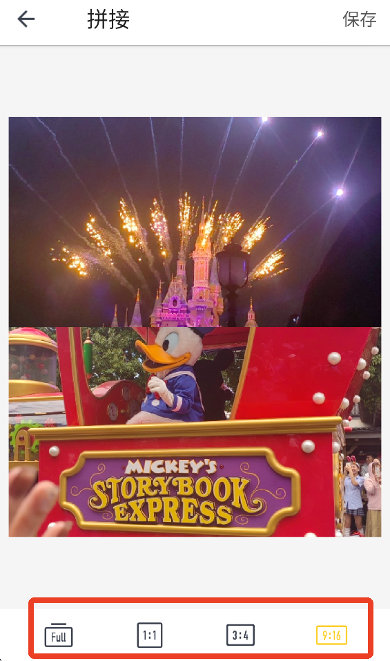 4、默认是上下拼接,下面可以调整拼图的尺寸。