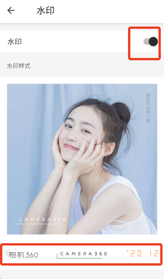 4、点击开启水印,滑动下方可以选择不同的水印样式。