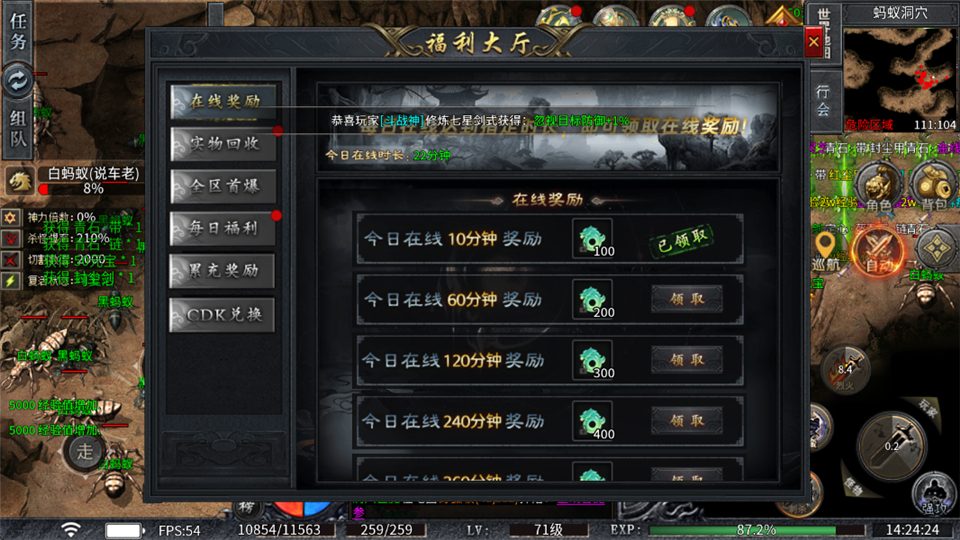 3、在挂机的过程中不要忘记在福利大厅中领取资源;