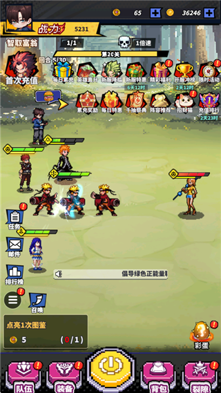 1、登录送路飞,全明星集结,你的本命角色已就位。 2、红色伙伴三选一,开局即巅峰。 3、兵长斩巨人、悟空元气弹,全明星同屏竞技。游戏截图