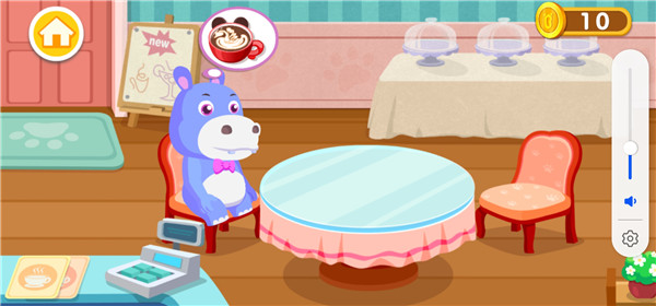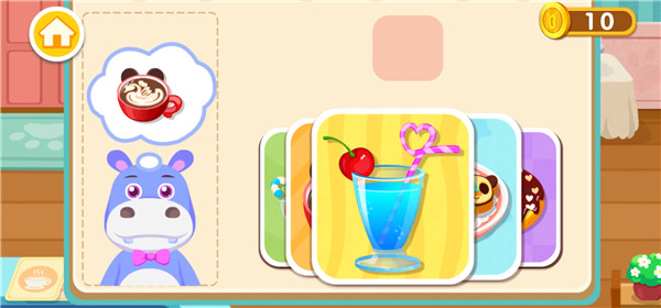 1、【忙碌的一天,从点单开始】 冰淇淋、披萨、饮料、蛋糕、甜甜圈……经典甜品菜单,快翻开看看。 2、【转动机器,烘焙甜品】 咖啡机、面包机、搅拌机、榨汁机、糖果机……多种机器等你来体验。 3、【DIY制作,打造特色美食】 三明治里放蔬菜还是培根?做心形饼干还是小熊饼干?多种口味造型,任你DIY。 4、【打扫餐桌,保持干净】 收拾剩余餐具,把桌子擦干净……多亏了你,餐厅越来越干净。 5、【招呼顾客,让顾客满意】 又来了一大波客人,赶紧安排座位,别让他们等太久了。 6、【赚取金币,获得奖励】 用厨艺赚取金币,就能解锁更多道具,烘焙更多甜品。奇妙咖啡餐厅游戏上手教程