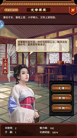 1、关于结婚,很多人不要急着找三妻四妾,这样身体会吃不消的,首先,生孩子生一堆傻孩子,我们看到孩子的属性与母亲的亲密度有关,所以建议先把大老婆扶正,亲密度上去后再去找小老婆。所以不用急着为了找老婆去寻访。 2、关于属性丹,针对性的属性丹给擅长能力和针对资质高的门客(比如武力丹你就给武力资质高的),随机丹的话给综合资质高的,集中吃,分散划不来。(建议,武力很关键,副本、衙门、以及过关卡的兵力消耗跟武力有很大关系) 3、关于势力,所有门客的属性全部加起来,再算上红颜系统里的技能与大人子嗣的属性(所以傻儿子和傻女儿的联姻势力也算,所以要优生优育)