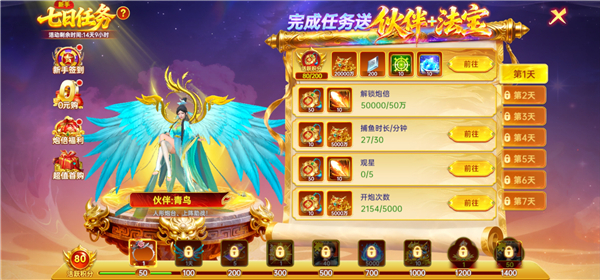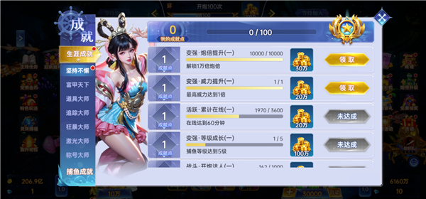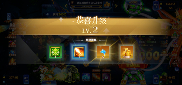 在捕鱼中完成各种成就,也可领取金币奖励。