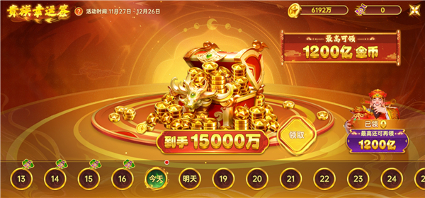 玩家在活动期间每日签到即可领取海量金币奖励,激活并提升贵族等级可增加获得的金币数量。