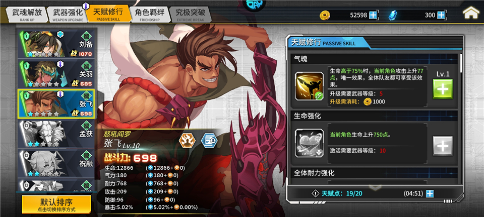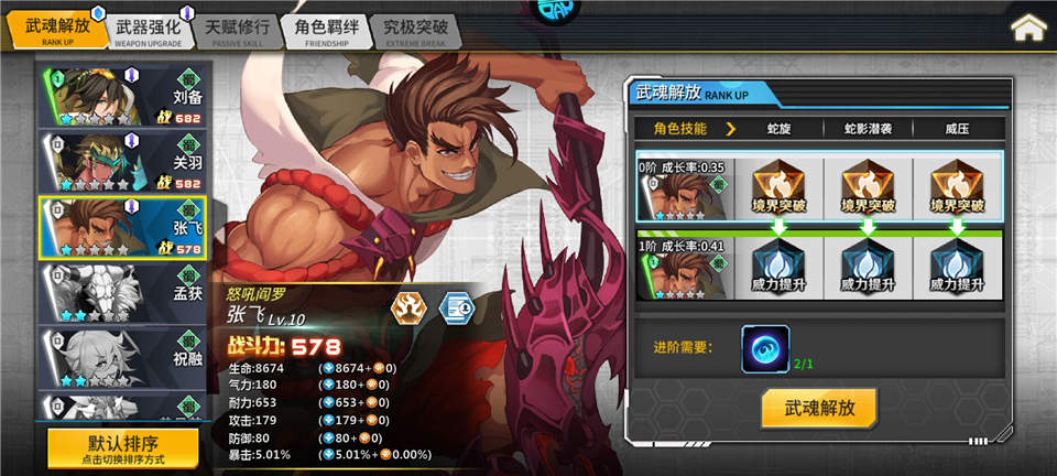 1、武魂解放 消耗战魂进阶角色可以提升角色技能的伤害。