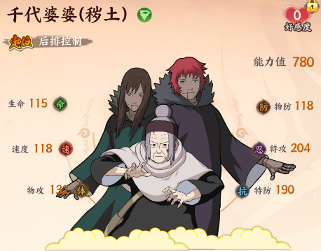 千代婆婆,一名精通傀儡术、医疗术的女忍者,跟有着半神称号得山椒鱼半藏是老对手,砂隐村的中坚力量。