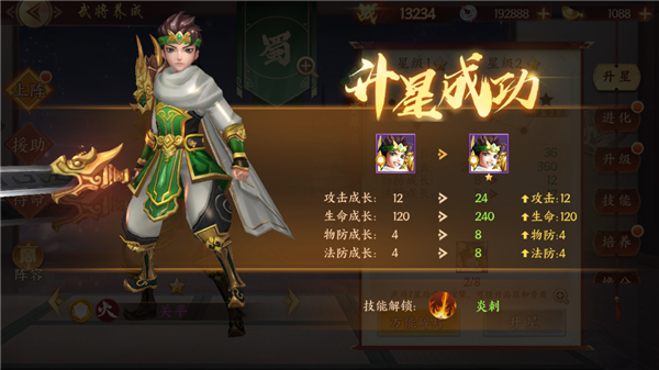 5、有了资源可在阵容中点击相应武将进行升级、装备