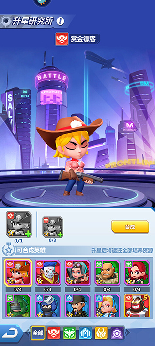 玩家在主城点击升星研究生即可进行英雄的升星,也可以进行英雄的合成。