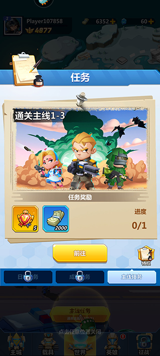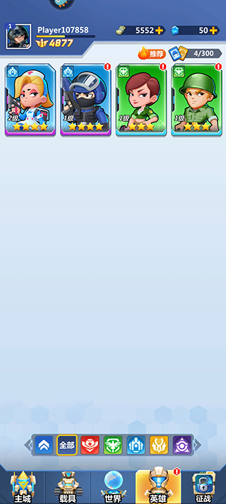 玩家点击下方英雄,即可查看自己拥有的英雄,点击英雄卡牌,即可对英雄进行升级以及装备的装卸,帮助他们提高战斗力战胜敌人。