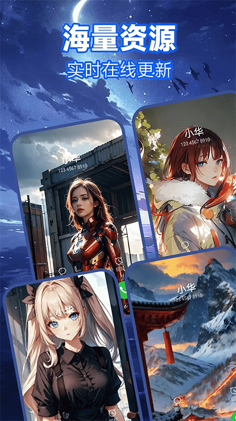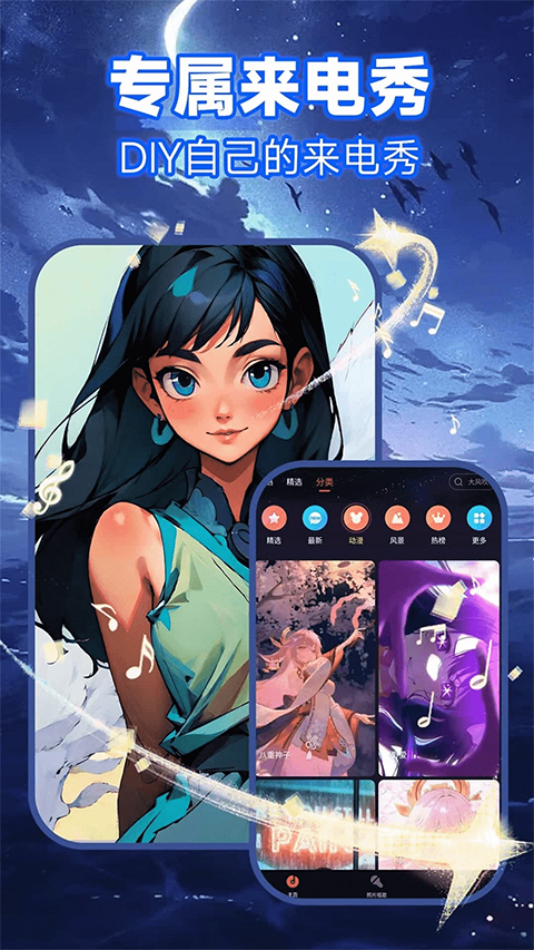 1、为爱人设定一个爱心来电主题吧,当他/她来电,伴着甜蜜的铃声亮起充满爱意的屏幕,你会感觉更甜蜜。为爸妈设定一个来电主题吧,看到他们的来电,心里倍加温馨。为朋友设定一个来电主题吧,幽默风趣的友人来电铃声伴着响起,看到就充满快乐。 2、100W+动态壁纸来电背景,炫酷个性、唯美风景、萌宠可爱、网红明星、卡通动漫,每天更新来电主题1W+,让您有更多选择! 3、收集了时下最火最热的歌曲铃声任你更换,设置自己专属的个性来电铃声,精细铃声分类,原创,翻唱,恶搞,影视,动漫,抖音网红热歌,流行金曲,影视热曲,动漫游戏,短信闹铃,DJ舞曲,搞笑另类,网络神曲,伤感语录,网友上传等,热门歌曲铃声、彩铃(炫铃),每日更新10000+!来电秀视频铃声设置教程