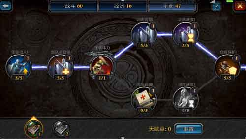 战斗一栏主要是对各个兵种及对整体伤害的属性加成,在这里面步兵防御和步兵生命是很重要的,步兵承受伤害,几乎对方所有攻击都要由步兵来抗,步兵不光,其他兵是不会死多少的,所以建议大家把所有加步兵生命、防御、伤害的全部加满。没有步兵栏的就加骑兵和弓箭手的防御和攻击,最重要的一点不要所有的都加着走,一般一路往下加就可以了,因为越到后面天赋点需要的越多,所有加着走肯定加不了多少,一般领主到45级以上的玩家建议一路加到生命保护术,因为开着生命保护术打人可以加30%的劫后余生。