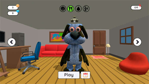 6、游戏内还有着其它休闲小游戏,可用来提升巴勃罗的心情值,还可以通过完成这些迷你游戏来赚取金币和星星,并用它们来购买游戏中的物品;