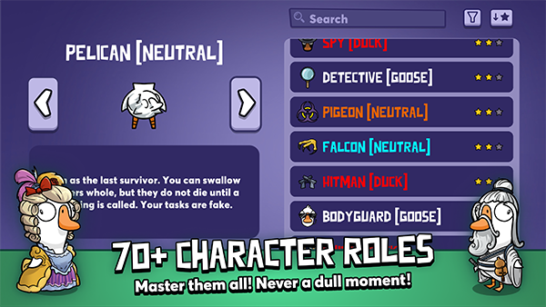 刺客 - 在开会投票阶段,正确猜出鹅的角色来杀死一只鹅,如果你猜错了,你就会死。