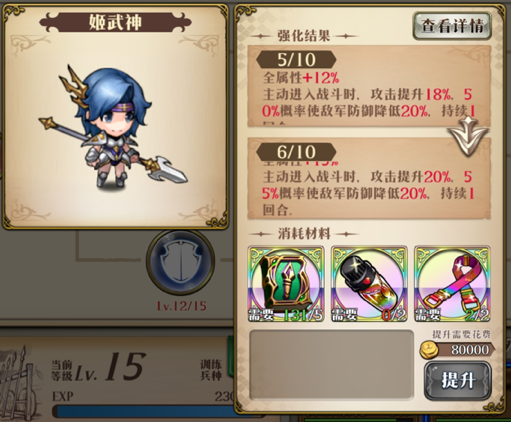 1、两大神技 "骑士精神"+"抢投",即使是步兵也有超强的突进能力还能2格白漂近战, ①骑士精神:让兰芳特使用后免疫减移动或者先被娜姆减移动再用骑士精神=马上结束1回合消除减移动还能接着3+3走6格,娜姆想牵制住兰芳特是难上加难。 ②抢投:让兰芳特有和马修气刃一样的近战白漂技能,近战小兵也会2格一起攻击,虽然起始倍率只有0.8,但走3步后能提升60%伤害这样算起来并不比气刃差多少,最为关键的是气刃自带使用后再走2格的特性,让兰芳特可以像娜姆一样风骚走位:走格3,再走3格,打2格,再走2格。 如果穿移动+1的鞋子,武器用冰霜剑真有点像步兵版娜姆。 2、羁绊-力 兰芳特羁绊力有2项不能点亮,很大程度影响了兰芳特实测中的表现。由于兰芳特目前的潜力还无法完全发挥出来,所以代替利昂雪莉成为全队主力输出还为时尚早,不过兰芳特的天赋让他还是有一定的上场率的。