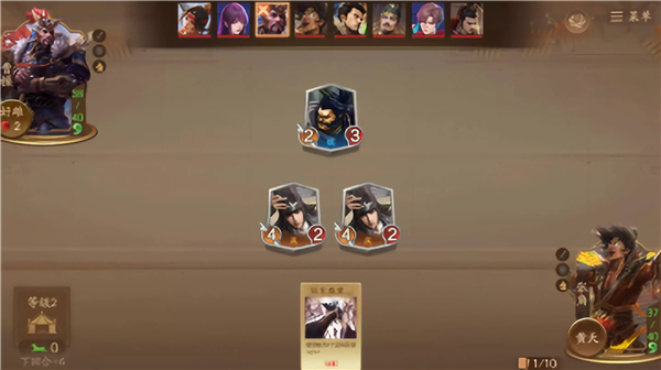 -玩家需要上阵武将进行战斗,每位玩家的场上最多同时上场7名武将。武将分为不同的阵营和星级,通常来说,更高星级的武将会拥有更强大的能力。玩家可以在招募阶段从营帐花费3枚虎符招募一名武将加入手中。玩家可以将场上的武将和手牌中的武将拖动到营帐里进行遣散并获得1虎符。