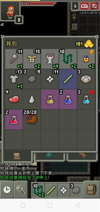 可以查看及使用武器、防具、卷轴、种子等道具。