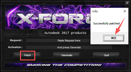 16、点击【Patch】,出现【Successfull patched】提示,点击【确定】。