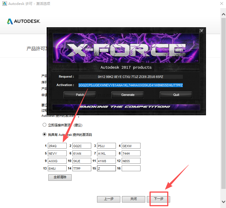18、将激活码复制到软件注册框中,点击【下一步】。